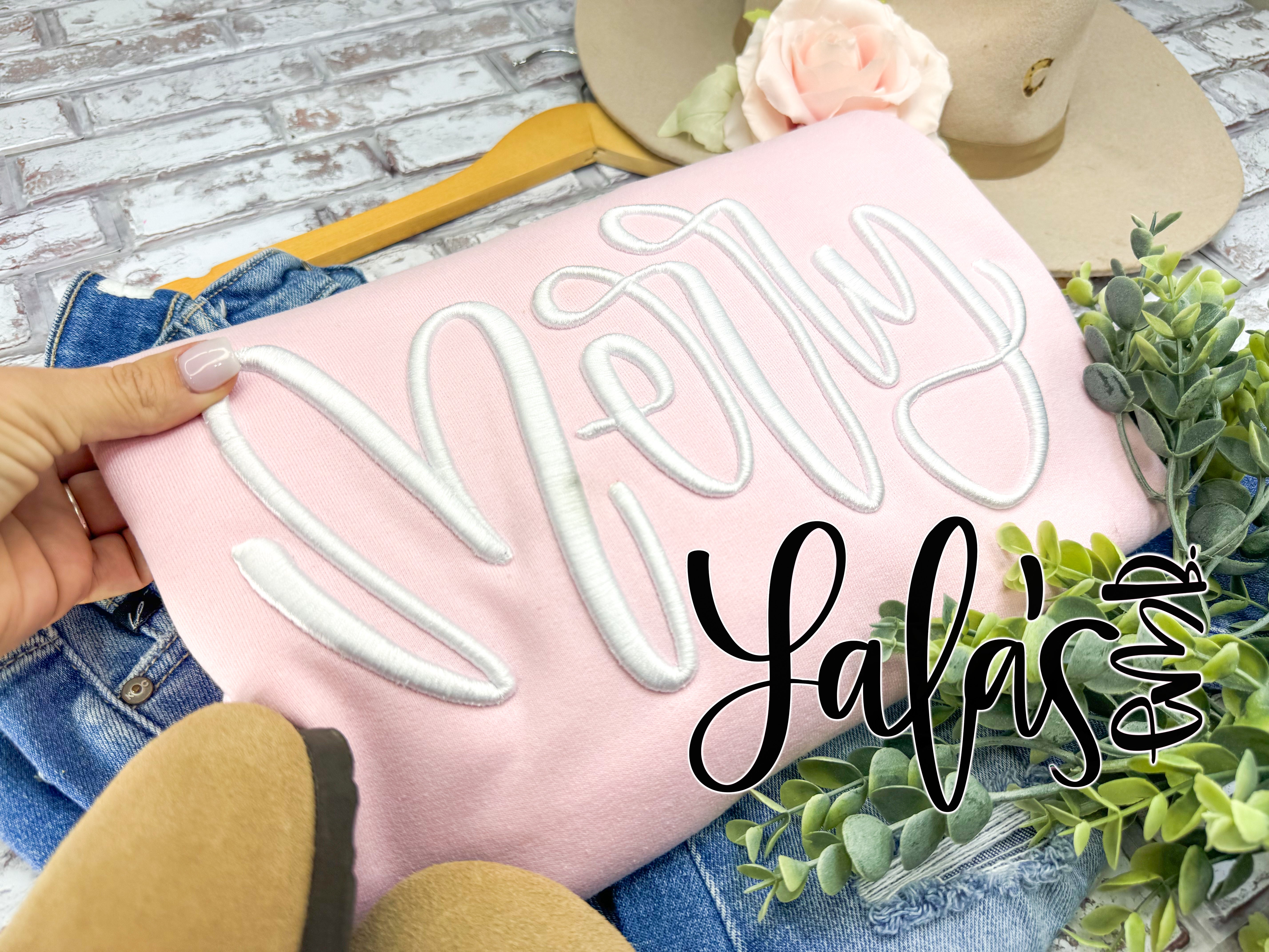We are loving the simplicity of this hand lettered embroidery sweatshirt. The word "Merry" will be embroidered on the front of the sweatshirt in a raise puff. (; The design was hand lettered by LaLa's so you will be receiving a uniquely made product right from us.