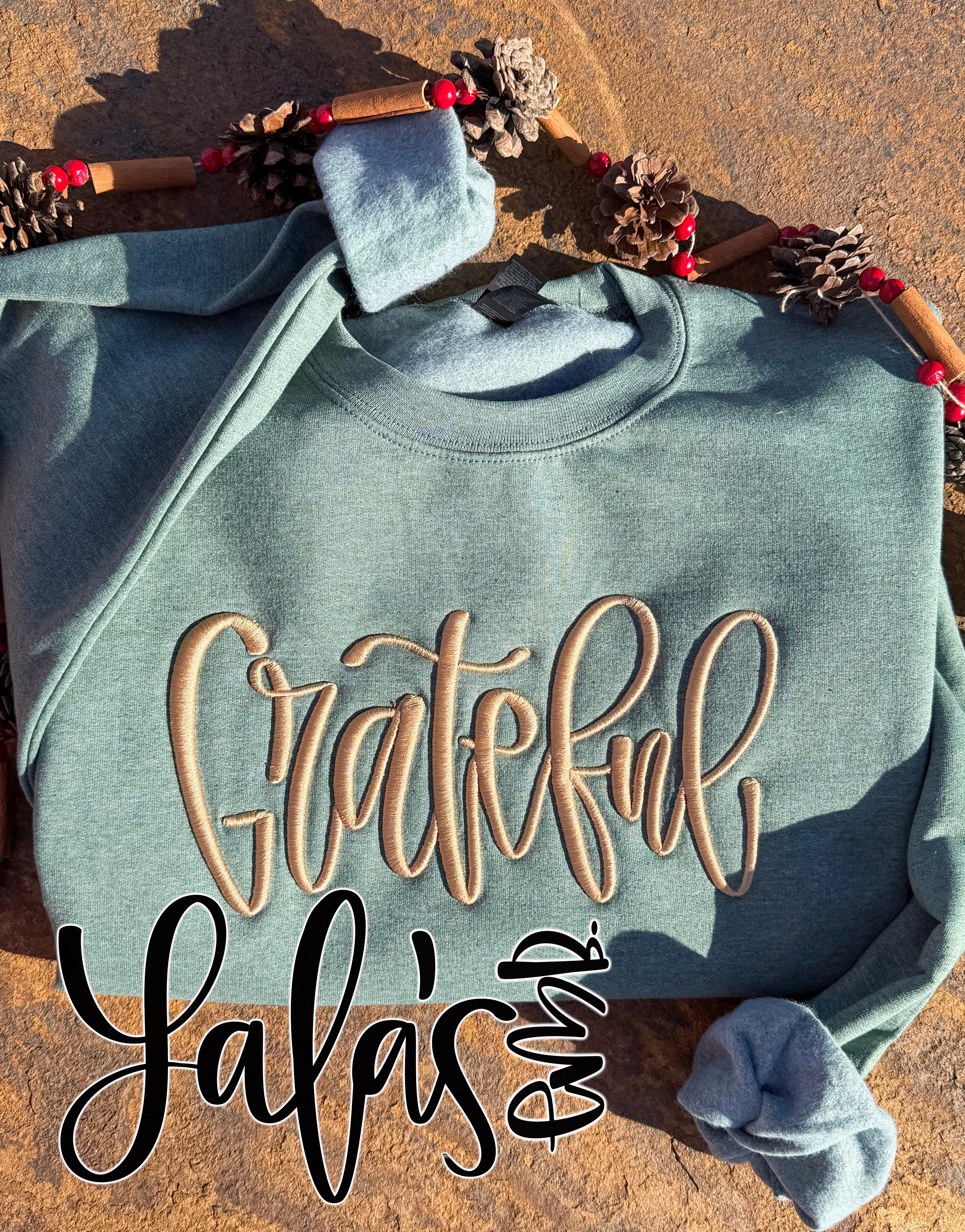 Grateful - 3D Puff Embroidery Design - Hand Lettered by LaLa's