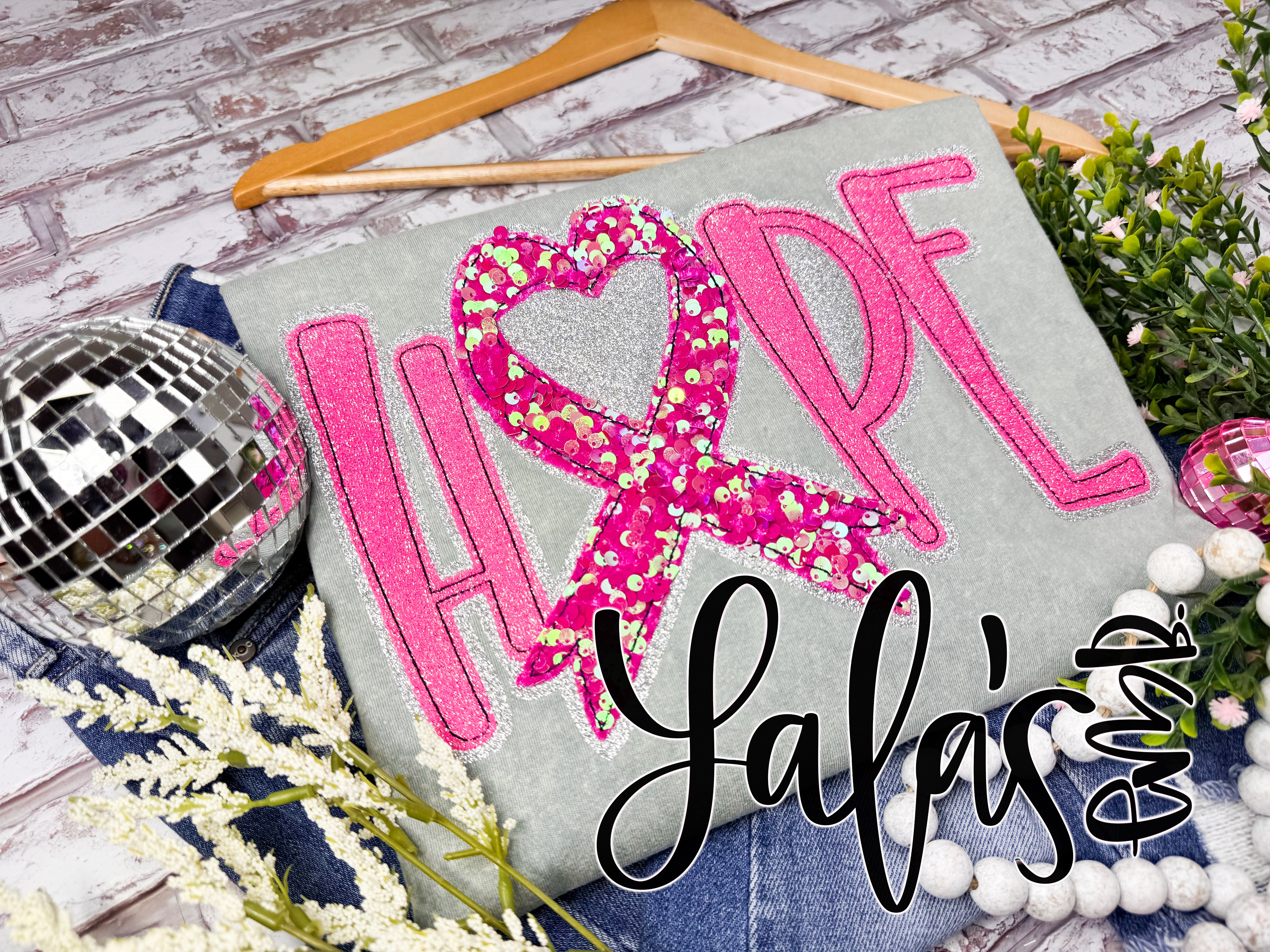 Hope + Ribbon Double Stacked Bean Stitch Applique Design